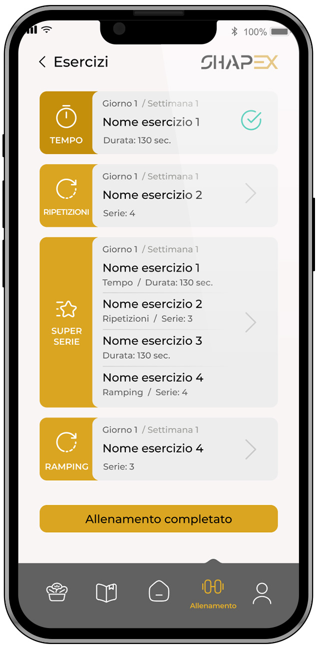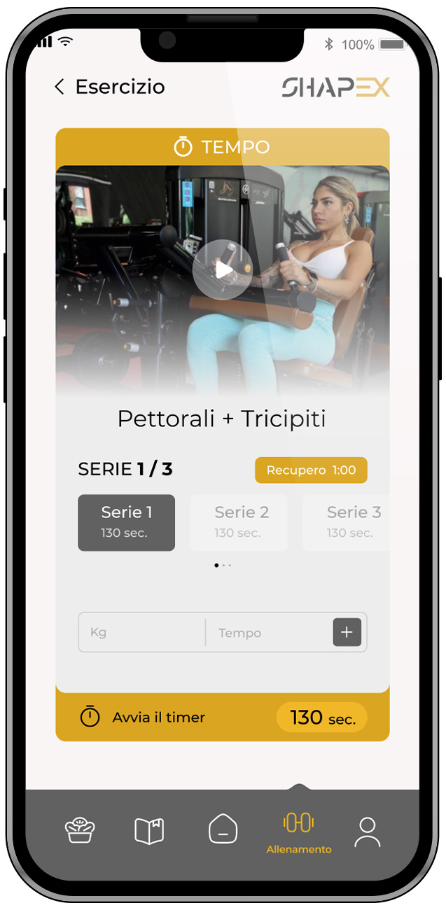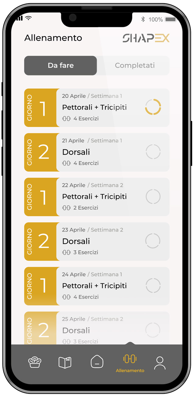 Con SHAPEX hai un coach sempre con te: programmi di allenamento, alimentazione e supporto costante, tutto in un’unica piattaforma con accesso immediato e intuitivo direttamente dal tuo smartphone.
