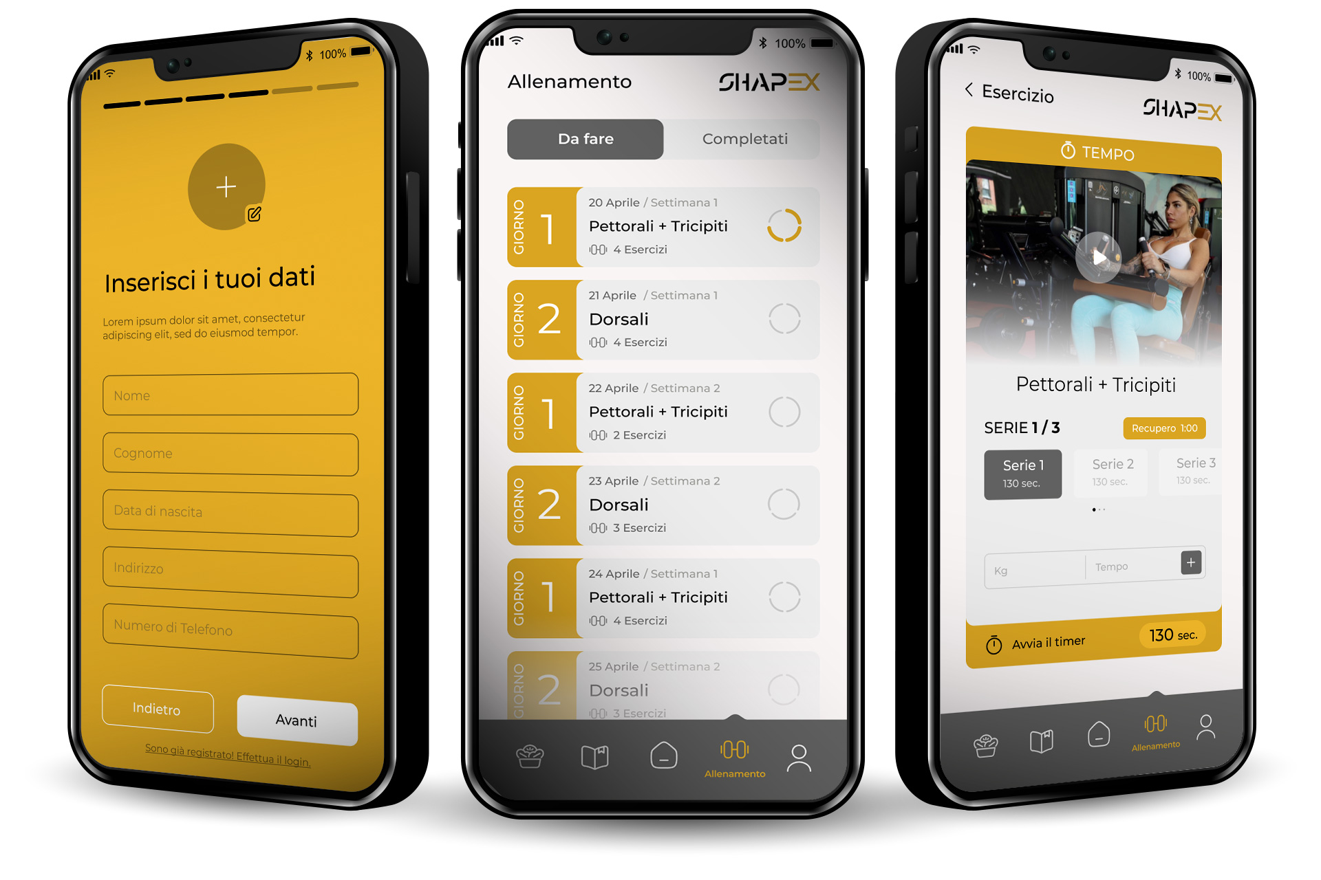 Con SHAPEX hai un coach sempre con te: programmi di allenamento, alimentazione e supporto costante, tutto in un’unica piattaforma con accesso immediato e intuitivo direttamente dal tuo smartphone.